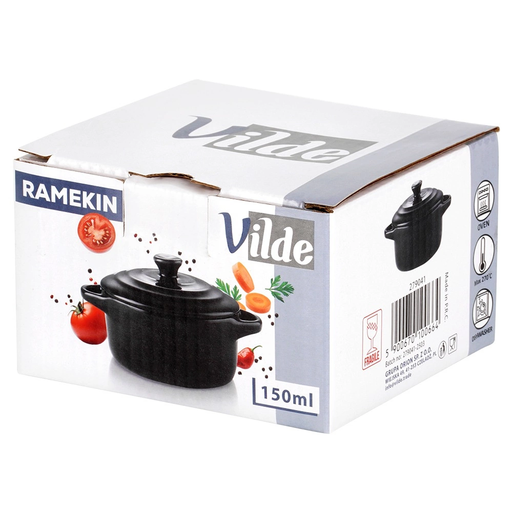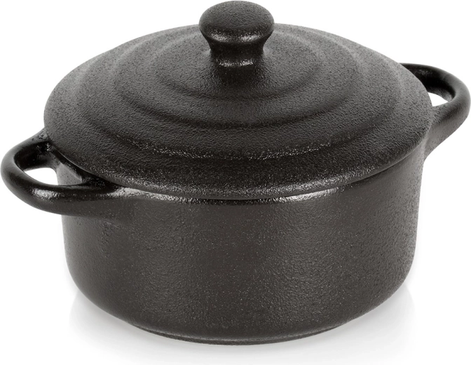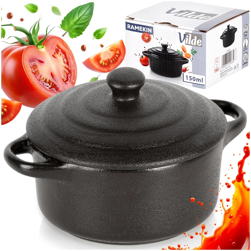 Ta stylowa porcelanowa kokilka z pokrywką pozwala piec, zapiekać i serwować w jednym naczyniu. Świetnie sprawdza się do porcji indywidualnych – od zapiekanych jajek, mini zapiekanek, deserów po tapas. Czarne wykończenie prezentuje się elegancko na każdym stole i podkreśla atrakcyjne serwowanie.