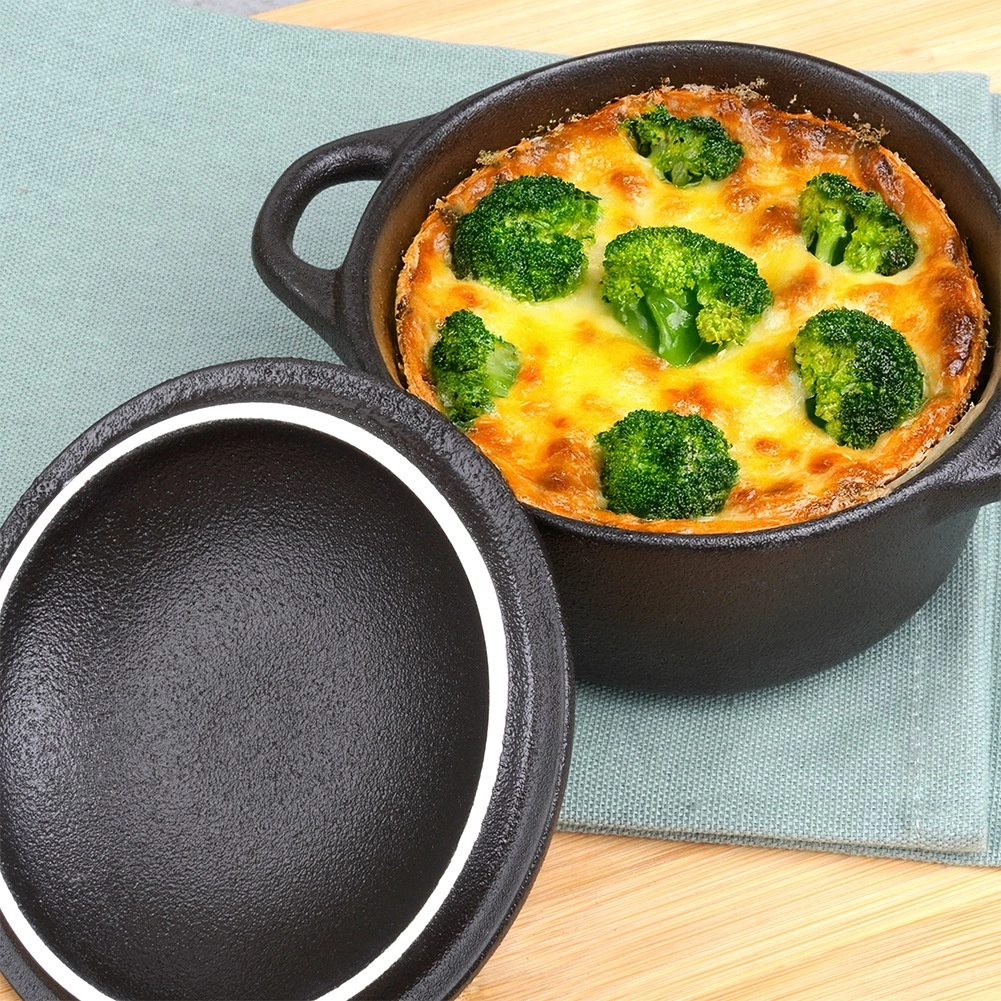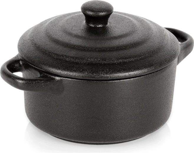 Dzięki kompaktowym wymiarom nadaje się do przygotowywania indywidualnych porcji, a przy tym świetnie sprawdzi się do serwowania oliwek, orzechów lub warzyw. Dwa praktyczne uchwyty umożliwiają bezpieczne przenoszenie, natomiast pokrywka chroni potrawy przed wysychaniem i utratą aromatu.