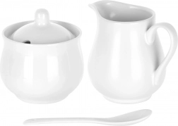 - Kompletny serwis: mlecznik 250 ml + cukierniczka 230 ml + łyżeczka 12,5 cm