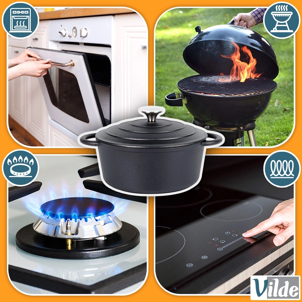 Kompatybilny ze wszystkimi typami kuchenek – gazowymi, elektrycznymi, ceramicznymi, halogenowymi i indukcyjnymi. Można go używać także na grillu lub bezpośrednio nad ogniskiem. Szczelna pokrywka z uchwytem ze stali nierdzewnej pomaga zatrzymać wilgoć i smak wewnątrz potrawy.