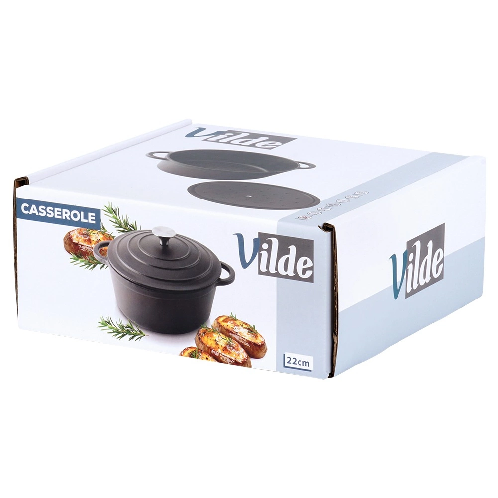 Żeliwny garnek CAST LINE o średnicy 22 cm wyróżnia się masywnym wykonaniem i świetnymi właściwościami termicznymi. Nadaje się do codziennego gotowania, duszenia gulaszu, zup, zapiekanek oraz pieczenia mięsa w piekarniku. Dzięki żeliwu nagrzewa się równomiernie i niezawodnie trzyma ciepło.