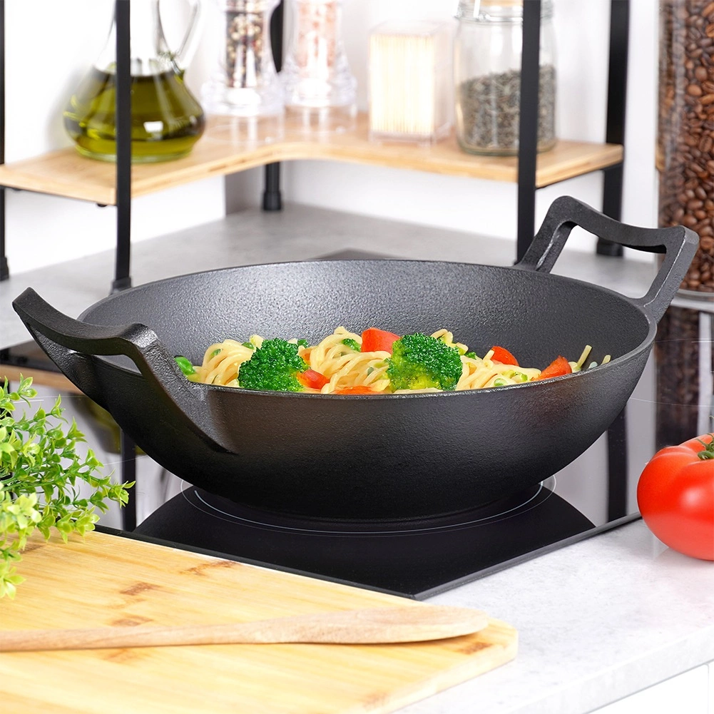 Maswne żeliwne korpus zapewnia stabilną temperaturę na całej powierzchni – idealnie do szybkiego stir-fry i powolnego duszenia.