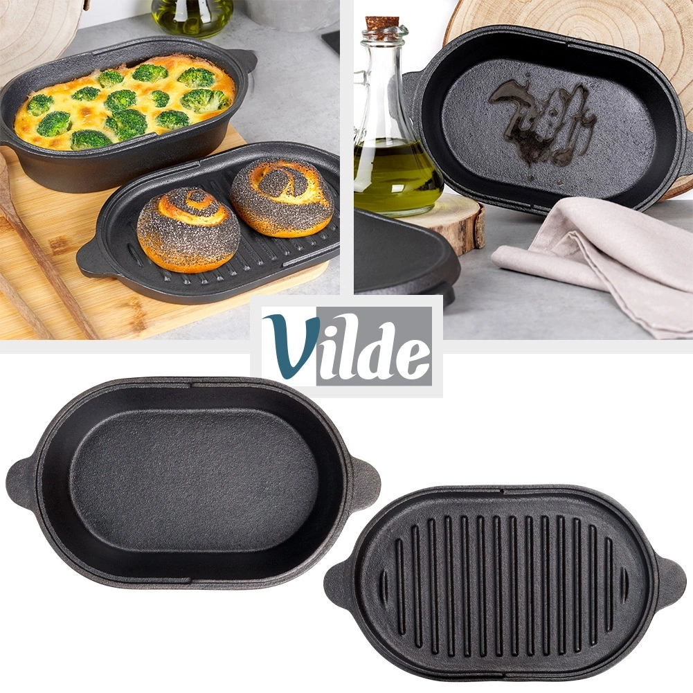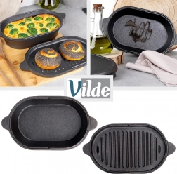 Wskazówka dotycząca pielęgnacji: Po każdym użyciu umyj, dokładnie wysusz i lekko naoliw, aby zapobiec korozji – to naturalna właściwość żeliwa. Naczynie nie posiada żadnej powłoki nieprzywierającej. Regularna pielęgnacja wydłuża żywotność. Oryginalny produkt marki Vilde z linii CAST LINE.