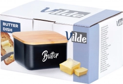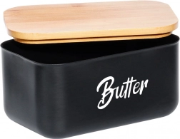 Ta praktyczna maselniczka łączy nowoczesny wygląd z funkcjonalnością – czarna, lakierowana stal z białym napisem „Butter” oraz naturalny bambus tworzą ponadczasowy dodatek do każdej kuchni. Dzięki pokrywce masło pozostaje chronione, świeże i stabilne aromatycznie, a jednocześnie jest zawsze gotowe do podania.
