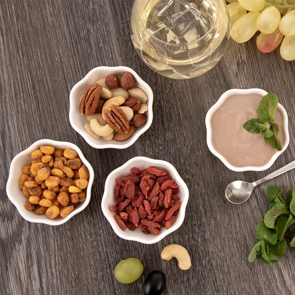 Klasyczna biała barwa i falowany brzeg pasują do każdego kompletu naczyń i pięknie prezentują się przy serwowaniu przekąsek i deserów.