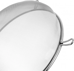Długa rączka i para bocznych haczyków umożliwiają stabilne oparcie sitka o garnek lub miskę, co zapewnia pracę bez wysiłku.