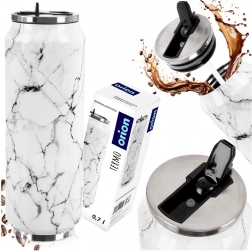 Elegancki termokubek z stali nierdzewnej w białym kolorze z marmurowym wzorem to idealny towarzysz do pracy, do auta i na wycieczki. Praktyczna pokrywka z uchylanym ustnikiem i wewnętrzną słomką umożliwia wygodne picie bez przechylania. Szczelne silikonowe uszczelnienie zapobiega przeciekaniu, więc kubek możesz bezpiecznie włożyć do plecaka lub torebki.