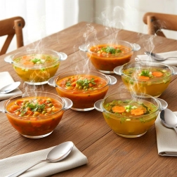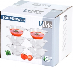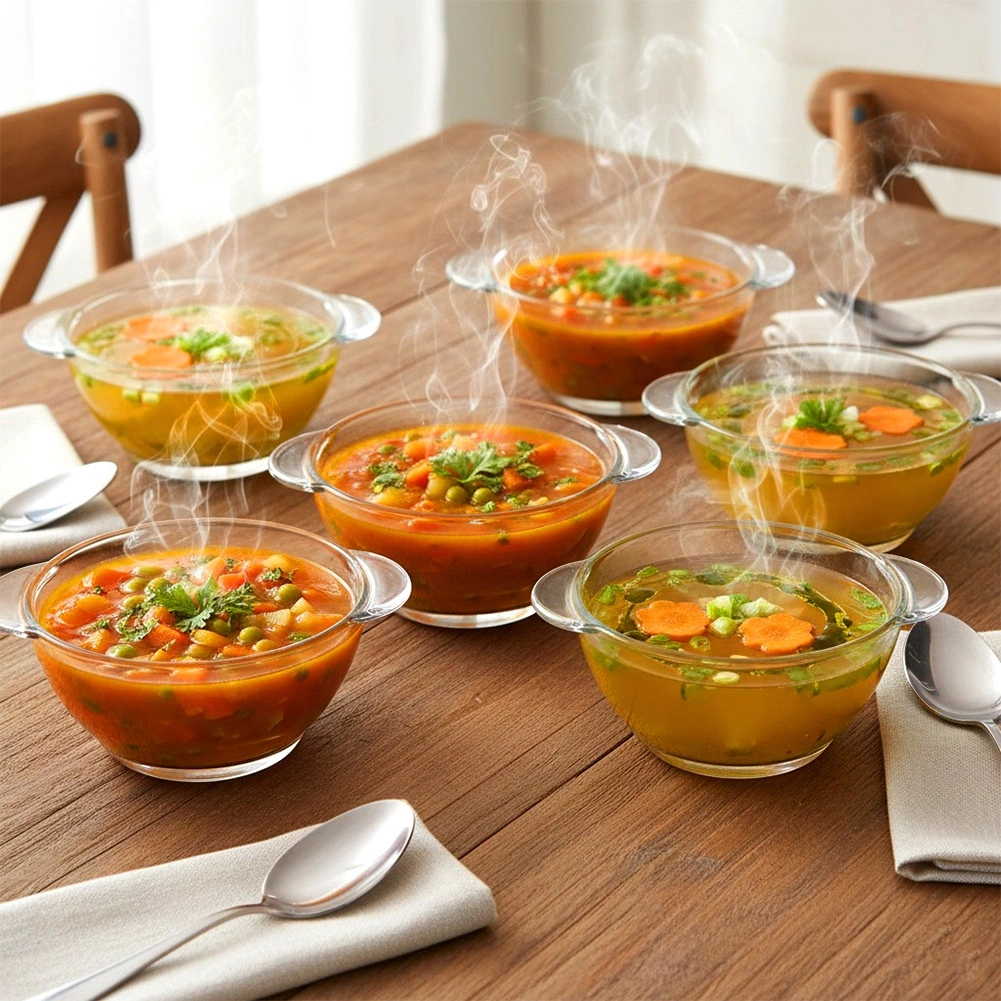 Zestaw szklanych misek do zupy o pojemności 420 ml to świetny wybór na co dzień i na specjalne okazje. Przezroczyste szkło podkreśla kolory i strukturę potraw, dzięki czemu zupy, kremy i desery zawsze wyglądają apetycznie. Dzięki klasycznemu kształtowi miski łatwo dopasować do każdego serwisu stołowego.