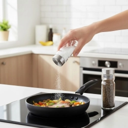 Perforowane litery na zakrętkach ułatwiają rozróżnienie soli i pieprzu – szybka orientacja podczas gotowania i serwowania.