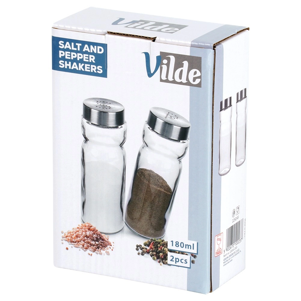 Odkryj praktyczny zestaw dwóch przyprawników VILDE – solniczkę i pieprzniczkę z wysokiej jakości, grubego szkła z metalowymi zakrętkami o wyglądzie stali nierdzewnej. Dzięki przezroczystemu korpusowi zawsze widzisz ilość przypraw i możesz je w porę uzupełnić. Otwory dozujące w zakrętce pomagają równomiernie sypać i zapobiegają przesaleniu lub nadmiernemu doprawieniu.