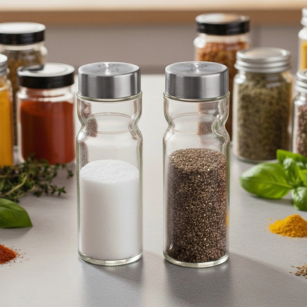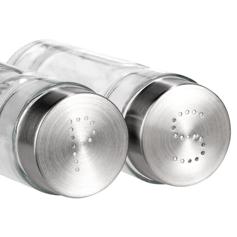 Metalowe zakrętki z drobnymi otworami zapewniają równomierne sypanie soli i pieprzu, dzięki czemu unikasz przesalania potraw i zbędnego marnowania.