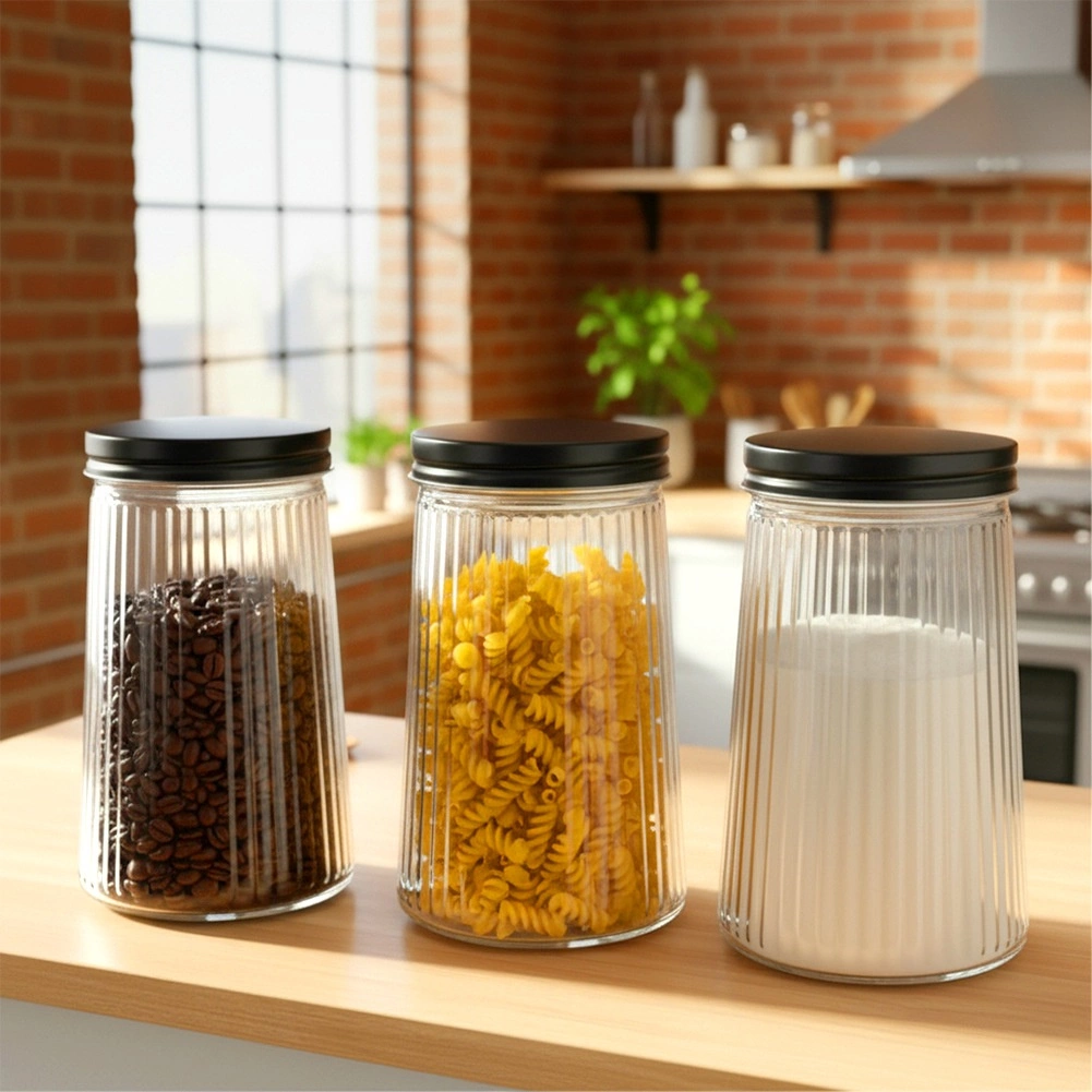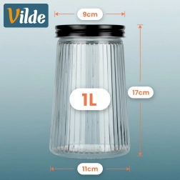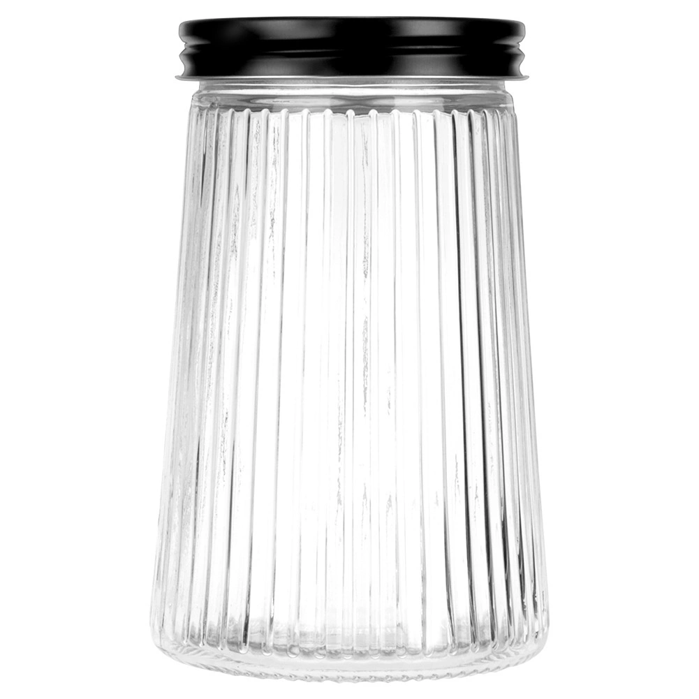 Praktyczny szklany pojemnik o pojemności 1 litra z metalową, zakręcaną pokrywką utrzyma Twoje produkty dłużej świeże i pięknie uporządkowane. Wykonany z wytrzymałego szkła borokrzemowego o eleganckim ryflowanym wzorze, umożliwia łatwą kontrolę zawartości i ilości. Idealny na kawę, makarony, cukier, orzechy i inne sypkie składniki.