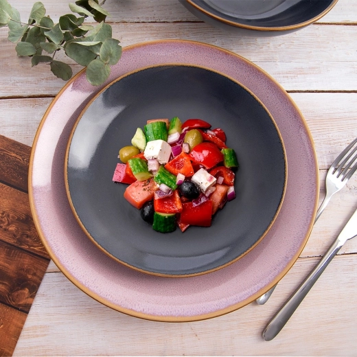 Stylowy talerz deserowy z kolekcji Glaze wyróżnia się nowoczesną szarą, szkliwioną powierzchnią z delikatnym nakrapianiem. Dzięki średnicy 20,5 cm jest perfekcyjny do ciast, tortów, ciastek oraz mniejszych przekąsek. Klasyczny okrągły kształt pasuje do różnych rodzajów zastawy stołowej i łatwo go skomponować z innymi elementami.