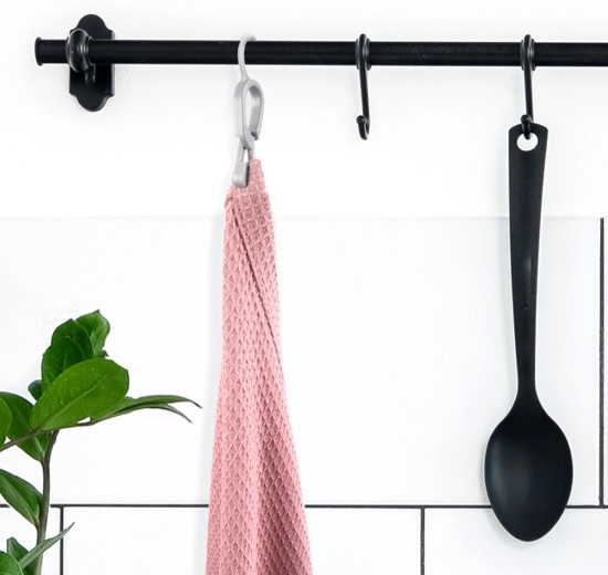 Klipsy są idealne do tkanin bez naszytej pętelki i pozwalają wygodnie odkładać je tam, gdzie są akurat potrzebne. Dwa odcienie dodatkowo umożliwiają łatwe rozróżnienie ręczników poszczególnych domowników.