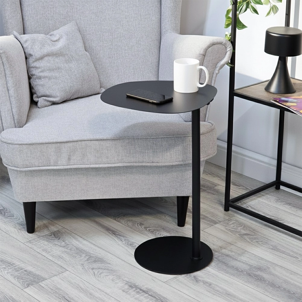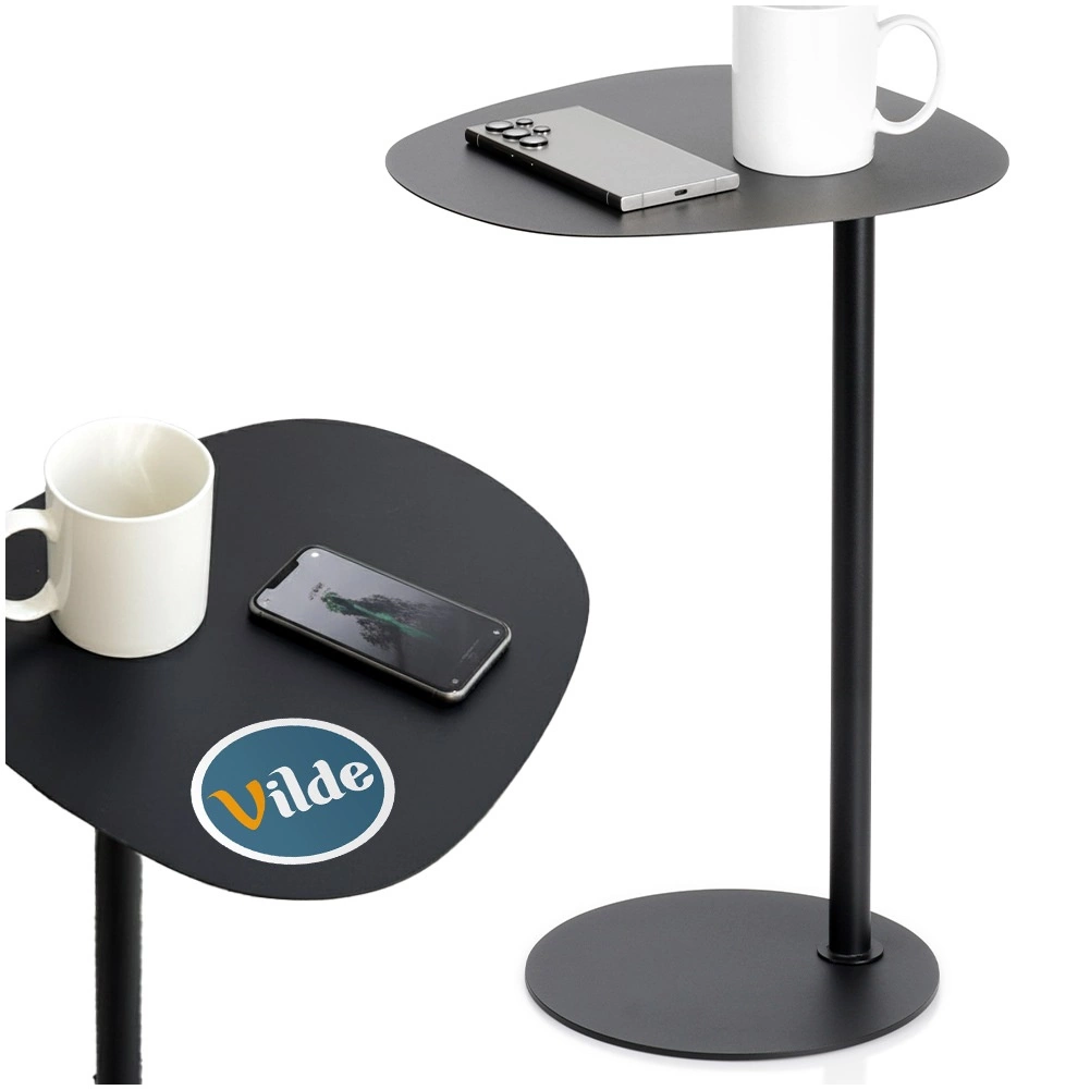 Elegancki i praktyczny boczny stolik kawowy do salonu i sypialni. Dzięki kompaktowym wymiarom 35 × 25 × 53 cm łatwo dosuniesz go do sofy lub łóżka. Trwała metalowa konstrukcja, matowe czarne wykończenie oraz stabilna okrągła podstawa zapewniają długą żywotność i bezpieczne użytkowanie na co dzień.