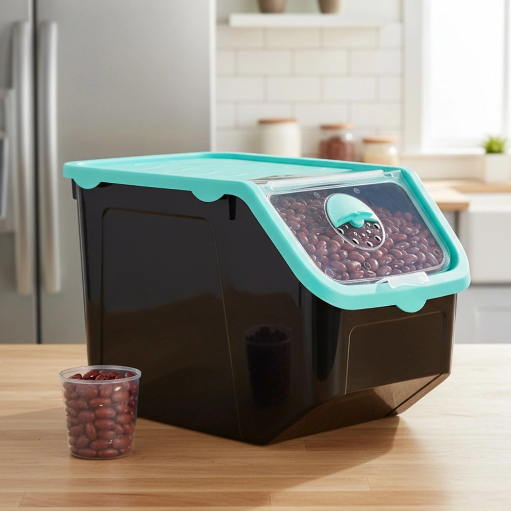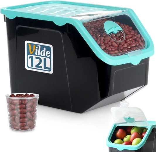 Utrzymaj porządek w kuchni i wydłuż świeżość żywności. Ten pojemny pojemnik idealnie sprawdzi się na cebulę, ziemniaki, czosnek, owoce oraz sypkie surowce, takie jak karma dla zwierząt czy proszki. Dzięki przezroczystej klapce zawsze widzisz zawartość i łatwo odmierzysz potrzebną ilość.