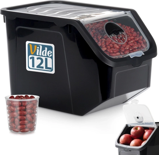 Praktyczny pojemnik na warzywa i owoce o pojemności 12 l o wymiarach 34 × 23 × 23 cm. Ma zatrzaskową przezroczystą klapkę, regulowaną wentylację dla dłuższej świeżości i jest bez BPA. Odpowiedni do kontaktu z żywnością, zamrażarki i zmywarki, odporny w zakresie od -20 °C do 100 °C. W zestawie znajduje się miarka do precyzyjnego dozowania.