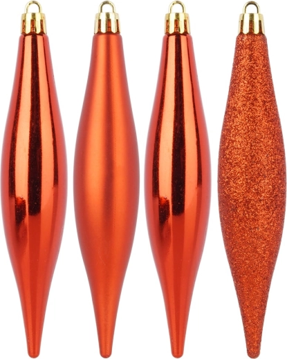 Stwórz w domu magiczny, świąteczny nastrój dzięki zestawowi 4 sztuk niezbitnych ozdób w kształcie sopli. Czerwone sople o wymiarach 3 × 15 cm świetnie sprawdzą się na choince, wiankach, girlandach oraz w nowoczesnych aranżacjach świątecznych. Połączenie wykończeń: błyszczącego, matowego i z brokatem zapewnia bogaty efekt wizualny i stylowy wygląd.