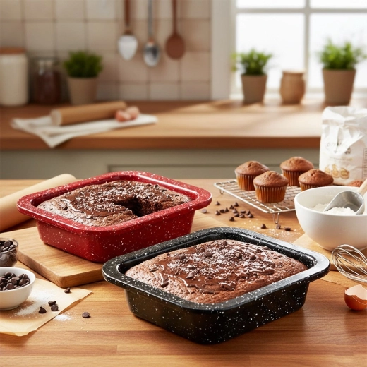 Zestaw dwóch kompaktowych foremek świetnie sprawdzi się w każdej kuchni – od szybkich deserów po wykwintne dania na słono. Dzięki granitowej, nieprzywierającej warstwie ciasto się nie klei, a gotowe porcje łatwo wyjmiesz bez uszkodzeń. Stal węglowa doskonale przewodzi ciepło, więc możesz liczyć na równomierne rezultaty przy każdym pieczeniu.