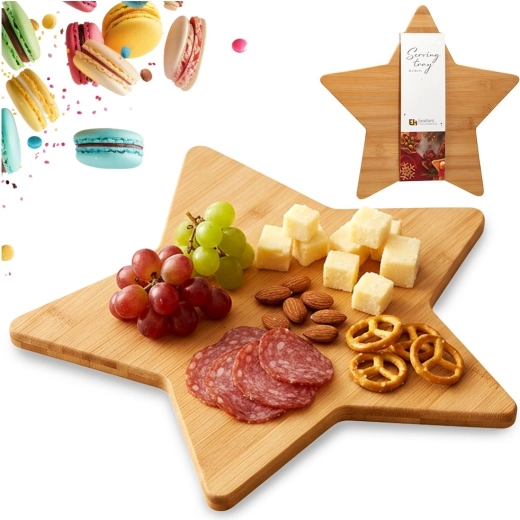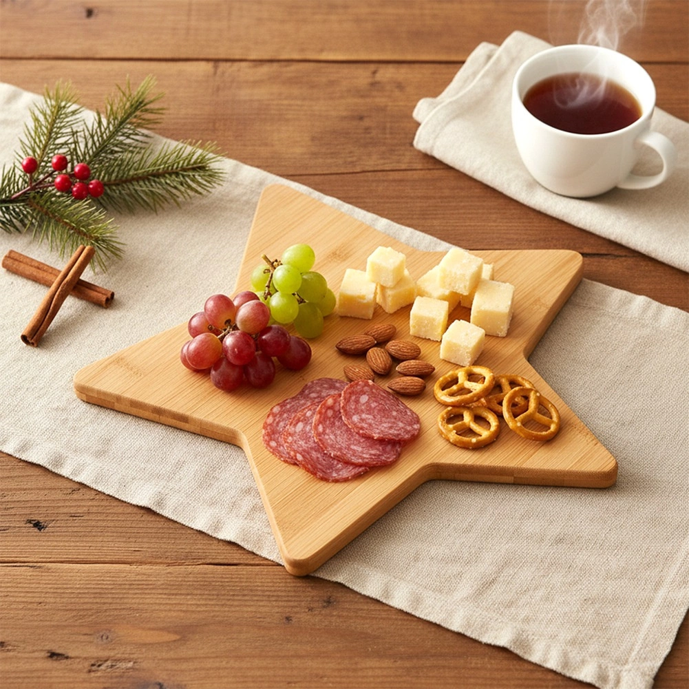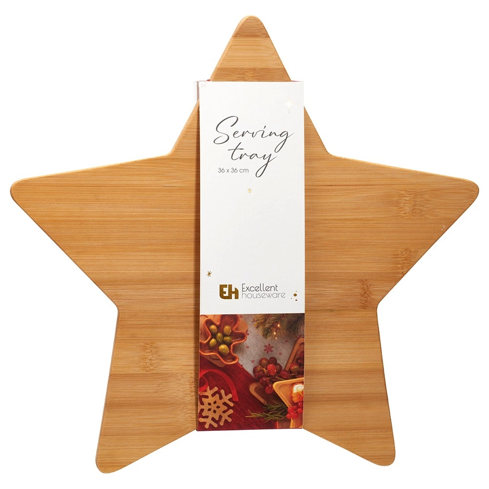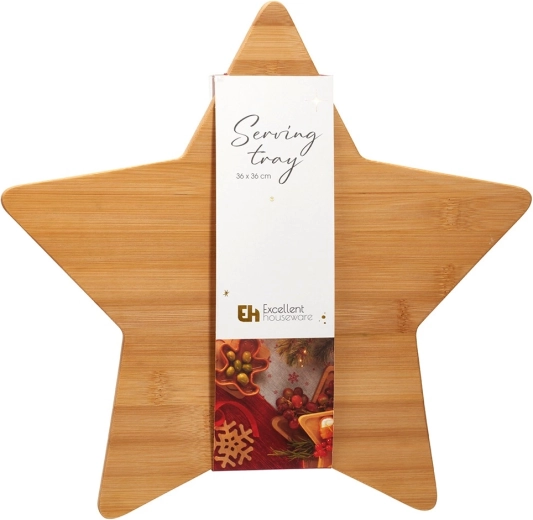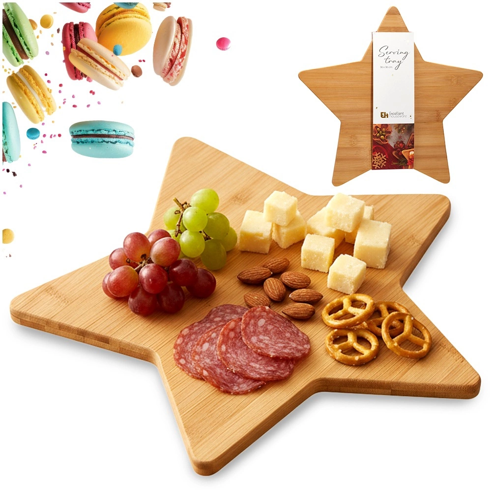 Stylowa bambusowa deska w kształcie gwiazdy o wymiarach 36 × 36 cm jest idealna do serwowania serów, wędlin, owoców i deserów. Wykonana z zrównoważenie pozyskiwanego bambusa, oferuje odporność na wilgoć, łatwą pielęgnację i efektowny design, który rozświetli zimowe i świąteczne nakrycie stołu.