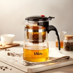 Trwałe materiały do napojów gorących i zimnych – korpus wykonany ze szkła borokrzemowego odpornego na temperatury od -20 °C do 120 °C, pokrywka i zaparzacz z wysokiej jakości tworzywa (pokrywka od -20 °C do 100 °C). Ergonomiczne ucho i praktyczny dziobek ułatwiają nalewanie bez kapania.