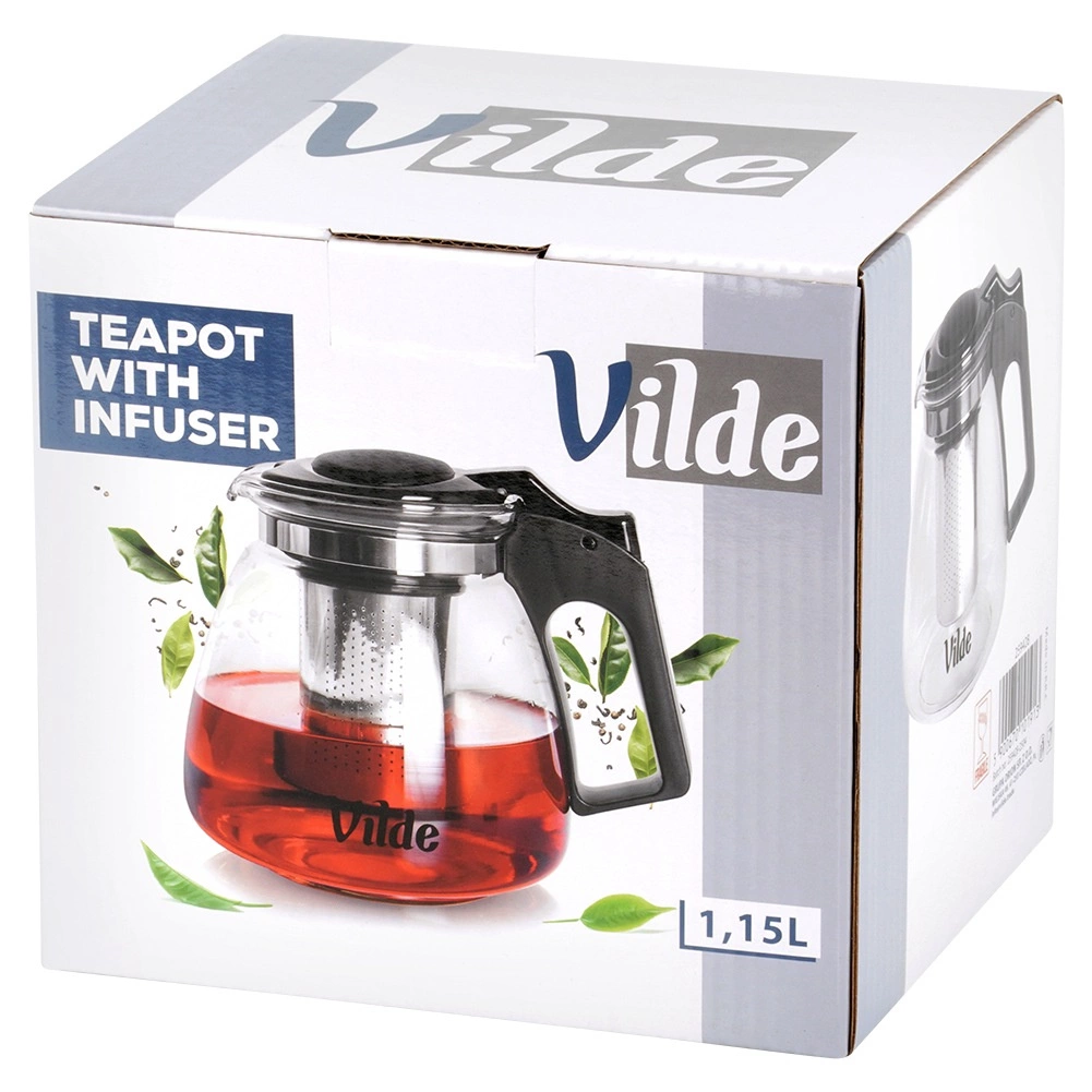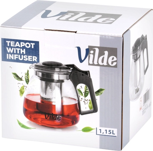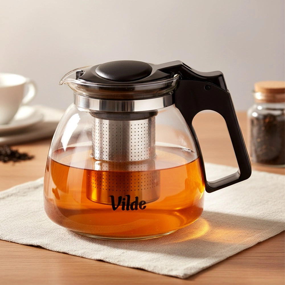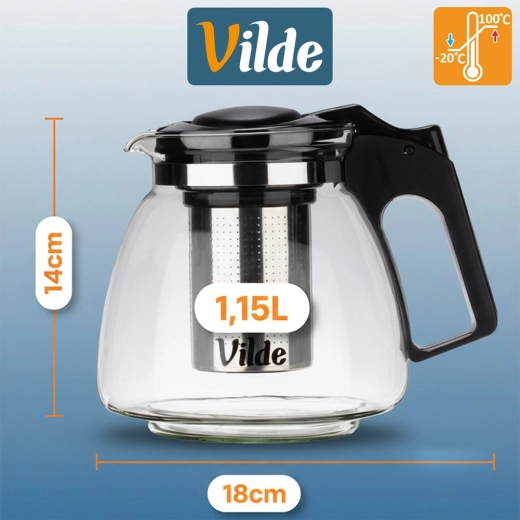 Praktyczny szklany dzbanek z wyjmowanym stalowym sitkiem do wygodnego zaparzania herbaty i ziół. Dzięki pojemności 1,15 l, żaroodpornemu szkłu borokrzemowemu i wygodnemu uchwytowi jest idealny do codziennego użytku. Odporność na temperatury od -20 °C do +100 °C, drobne sitko dla klarownego naparu bez osadu oraz łatwa pielęgnacja ucieszą każdego miłośnika herbaty.
