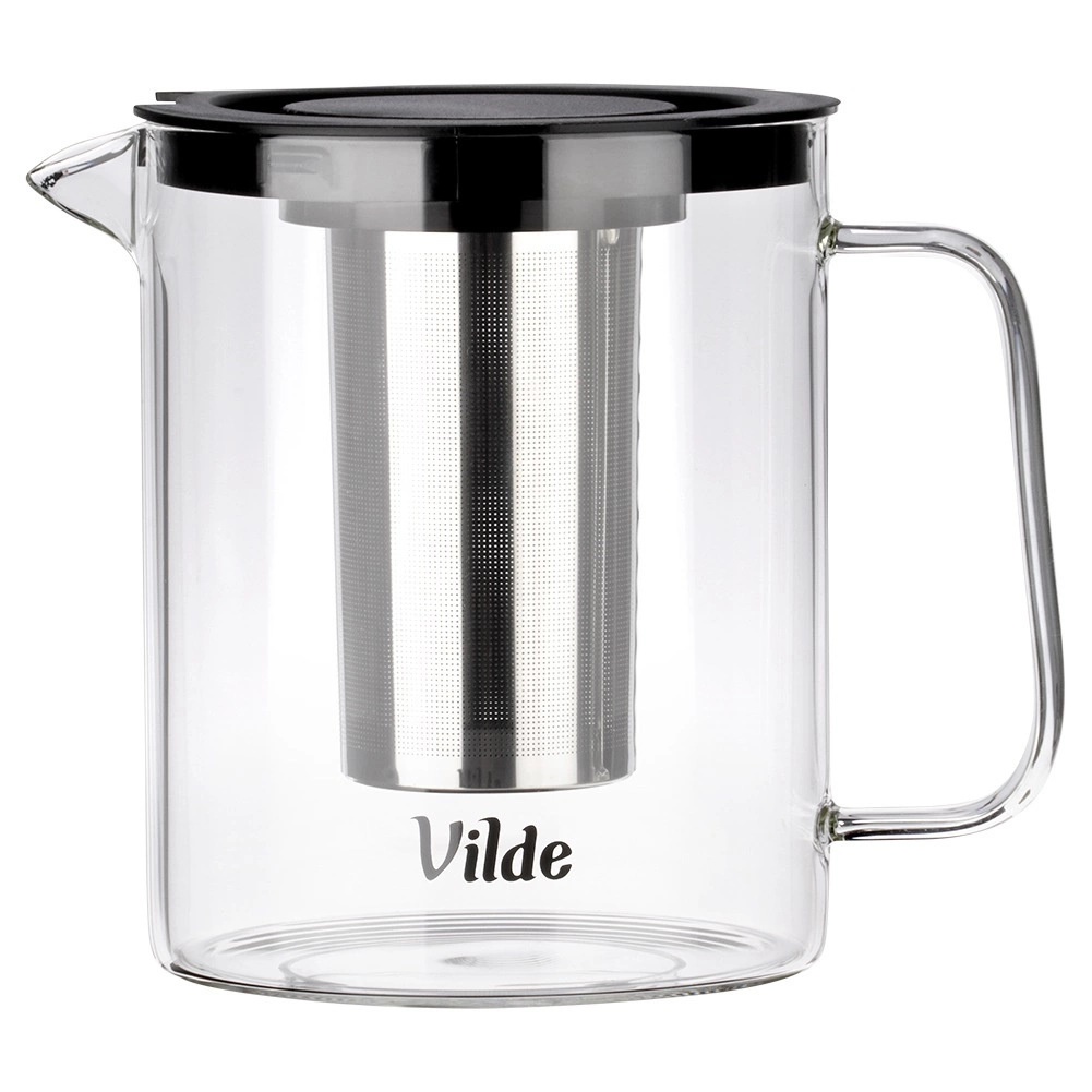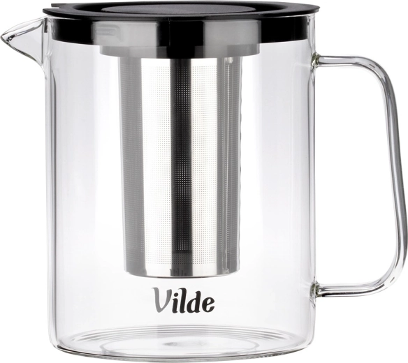Praktyczny szklany dzbanek z nierdzewnym zaparzaczem o pojemności 1,5 l do przygotowywania herbaty, naparów ziołowych oraz zimnych napojów. Wykonany z borokrzemowego szkła odpornego na temperaturę i wyposażony w wygodne ucho, dzióbek oraz praktyczną pokrywkę. Delikatny stalowy filtr niezawodnie wychwytuje listki i zapewnia klarowny napój bez zbędnych osadów.