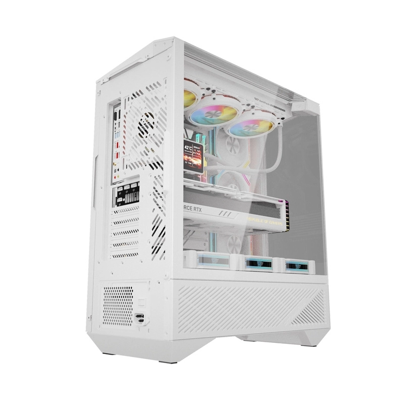 Zainstaluj do 10× wentylatorów 120 mm oraz chłodzenie wodne z chłodnicą do 360 mm u góry. Obudowa została zaprojektowana pod stabilne temperatury nawet podczas grania w tytuły AAA i pracy w wymagających aplikacjach.