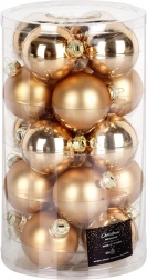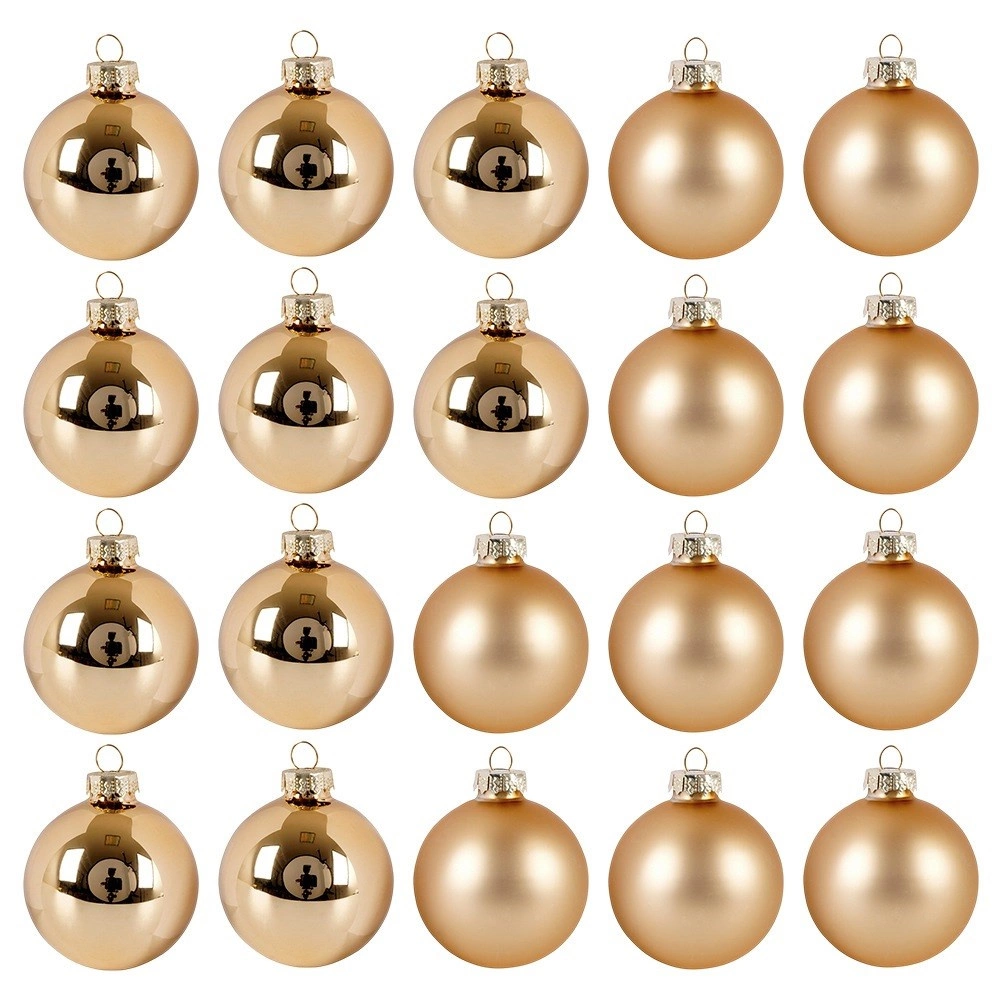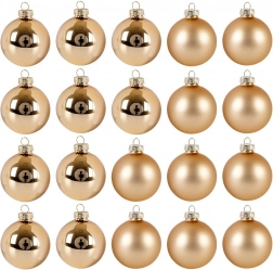 Udekoruj choinkę stylowym zestawem złotych szklanych ozdób, które prezentują się ponadczasowo i elegancko. Dzięki połączeniu 10 błyszczących i 10 matowych bombek uzyskasz harmonijny kontrast i piękne refleksy świateł. Wysokiej jakości szkło podkreśla premiumowy charakter całej dekoracji.