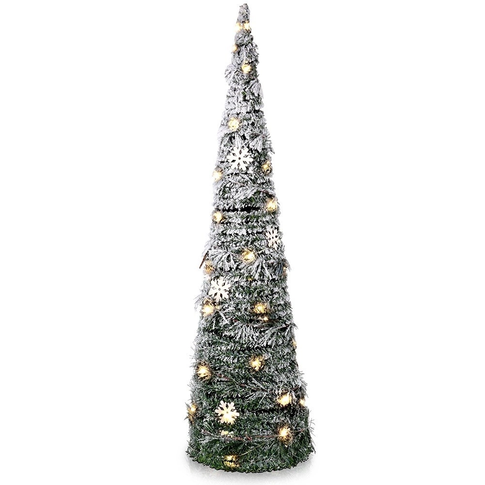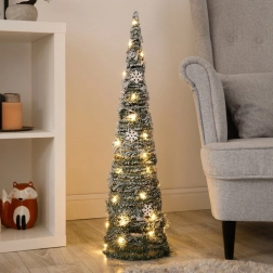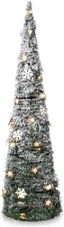 Elegancka stożkowa świąteczna dekoracja o wysokości 80 cm z 40 ciepłymi diodami LED wprowadzi do Twojego domu magiczny zimowy nastrój. Dzięki efektowi śnieżnego puchu oraz drewnianym płatkom śniegu prezentuje się naturalnie i przytulnie, ma oszczędne zasilanie bateryjne i praktyczną funkcję timera dla wygodnego użytkowania.