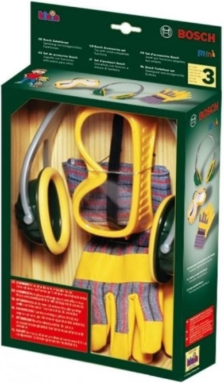 Ten realistyczny zestaw środków ochrony BOSCH wspiera kreatywną i bezpieczną zabawę w warsztacie i w domu. Dzieci poznają podstawy prawidłowego obchodzenia się z narzędziami i zasady bezpieczeństwa, jednocześnie świetnie się bawiąc wyposażeniem przypominającym prawdziwe akcesoria robocze.