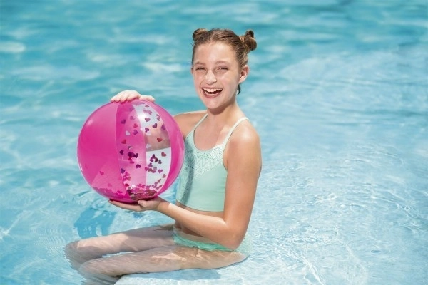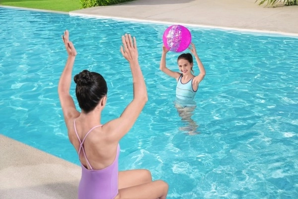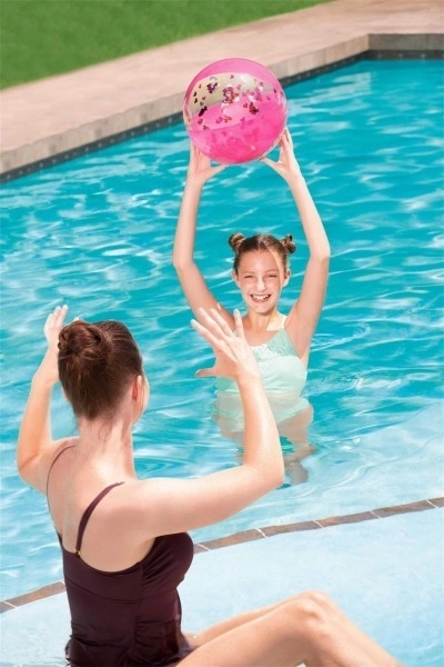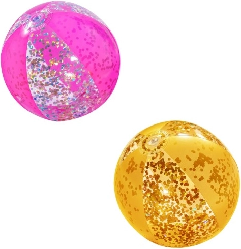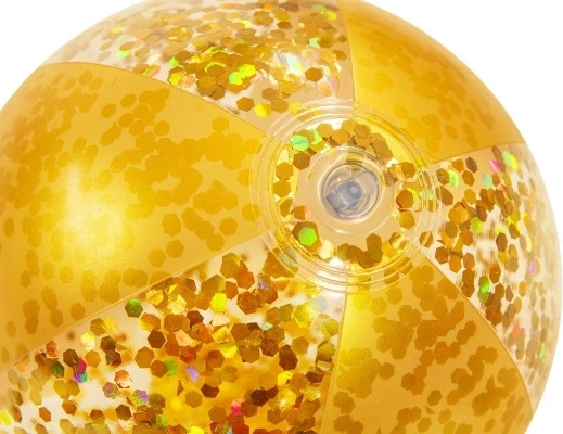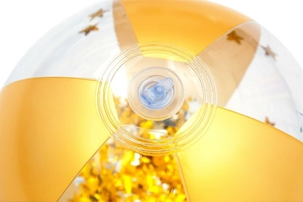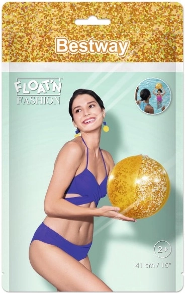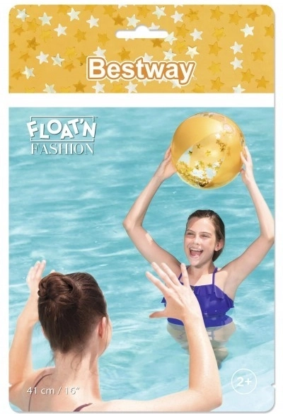 Elegancka brokatowa plażowa piłka Bestway zapewnia mnóstwo zabawy w wolnym czasie. Ta złota piłka jest wypełniona lśniącym brokatem, który podczas gry radośnie wiruje i migocze.
