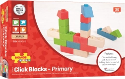 Drewniana układanka Bigjigs Baby oferuje unikalne połączenie drewnianych klocków i plastikowych łączników, które umożliwiają tworzenie solidnych i stabilnych konstrukcji. Klocki w różnych kształtach i kolorach są idealne dla dziecięcych rączek.