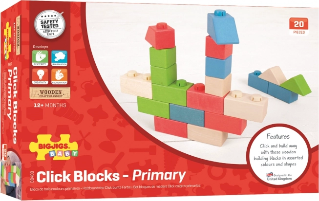 Drewniana układanka Bigjigs Baby jest przeznaczona dla małych dzieci od 12 miesięcy. Zawiera drewniane klocki z plastikowymi łącznikami, które można łatwo łączyć. Wspiera kreatywność i motorykę małą.
