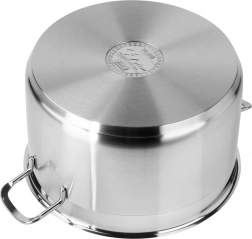 Garnek jest odpowiedni do wszystkich typów płyt grzewczych, w tym indukcyjnych, i przystosowany do gotowania z minimalną ilością tłuszczu bez zbędnej utraty witamin i minerałów. Praktyczna stalowa pokrywka i wygodne uchwyty ułatwiają przenoszenie. Powierzchnia z wysokiej jakości stali nierdzewnej 18/10 jest łatwa w czyszczeniu i odporna na korozję.