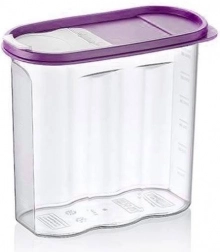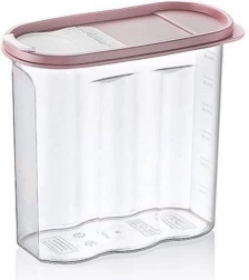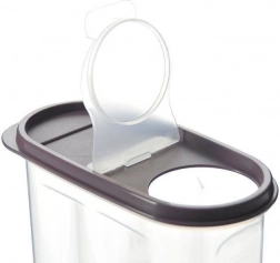 Praktyczny kuchenny pojemnik o pojemności 1,7 l z pokrywą z dozownikiem ułatwia przechowywanie mąki, cukru, zbóż i płatków. Dzięki transparentnemu korpusowi masz zawartość zawsze pod kontrolą, a boczna miarka co 250 ml pozwala łatwo odmierzyć potrzebną ilość. Pojemnik jest bez BPA, wytrzymały i nadaje się do zmywarki, mikrofalówki, lodówki i zamrażarki.