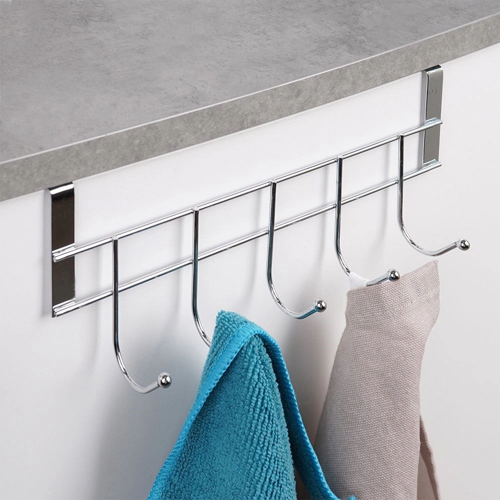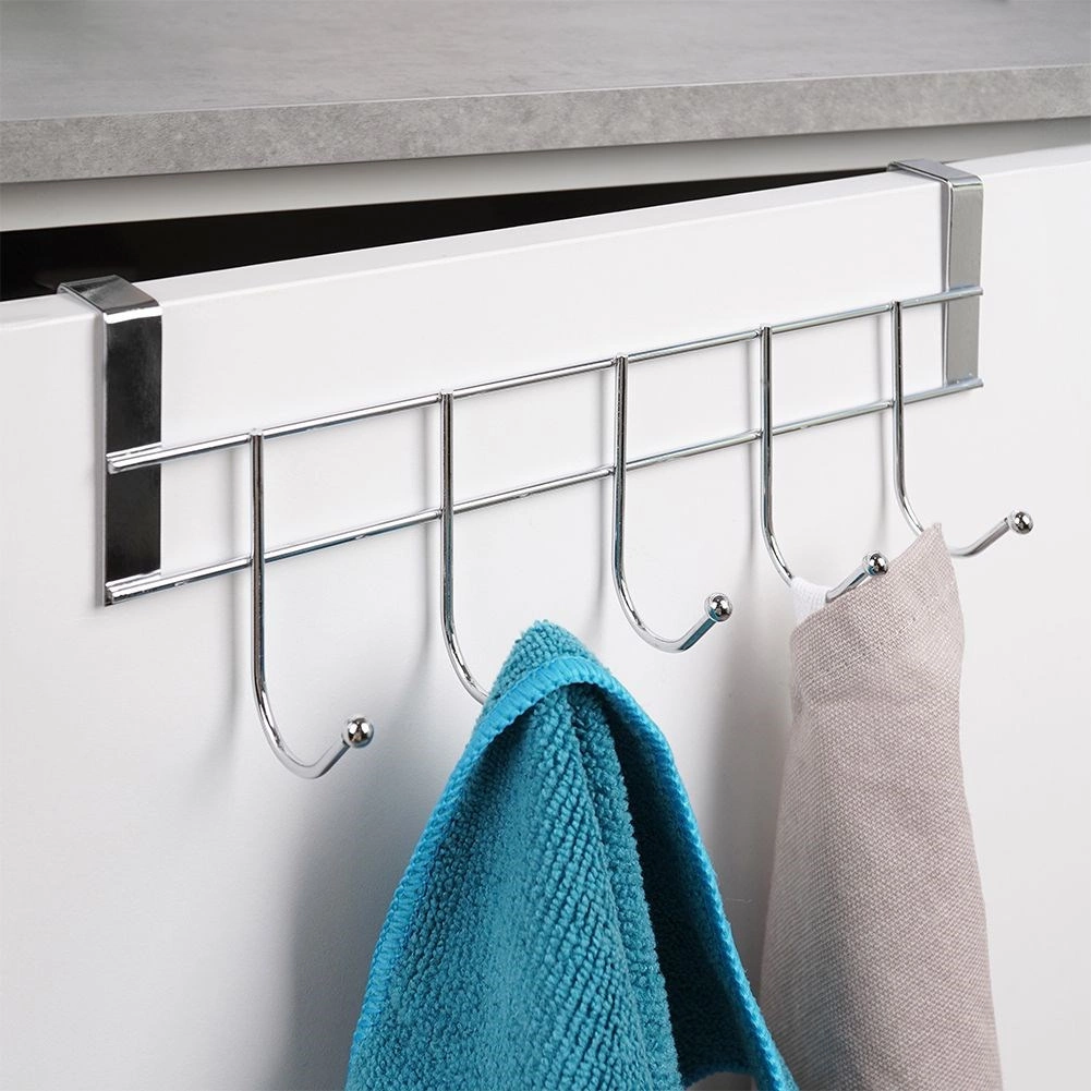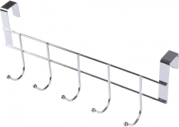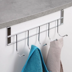 Praktyczny wieszák do zawieszenia na drzwiach z 5 haczykami oszczędza miejsce i trzyma wszystko pod ręką. Dzięki solidnej, chromowanej konstrukcji jest trwały i łatwy w utrzymaniu. Bez wiercenia – wystarczy zawiesić na drzwiach o grubości do 2 cm. Idealny do łazienki, kuchni i przedpokoju na ręczniki, ściereczki i akcesoria.