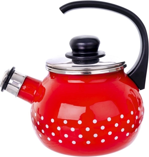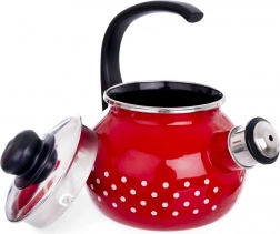 Ten emaliowany czajnik łączy klasyczny wygląd z codzienną praktycznością. Dzięki solidnej stali z emaliowaną powłoką świetnie przewodzi ciepło, gwizdek niezawodnie sygnalizuje wrzenie, a ergonomiczny uchwyt pozostaje przyjemnie chłodny. Czerwone wykończenie z białymi kropkami doda Twojej kuchni dekoracyjnego akcentu.