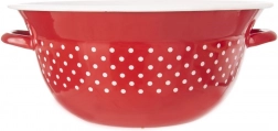 Ta wysokiej jakości miska z emaliowanej stali w czerwonym kolorze z białymi kropkami to świetny pomocnik w każdej kuchni. Zapewnia dużą pojemność 9 l oraz wygodne uchwyty do bezpiecznego przenoszenia. Sprawdzi się do codziennego gotowania, przygotowywania ciasta, mieszania składników i stylowego serwowania na stół.