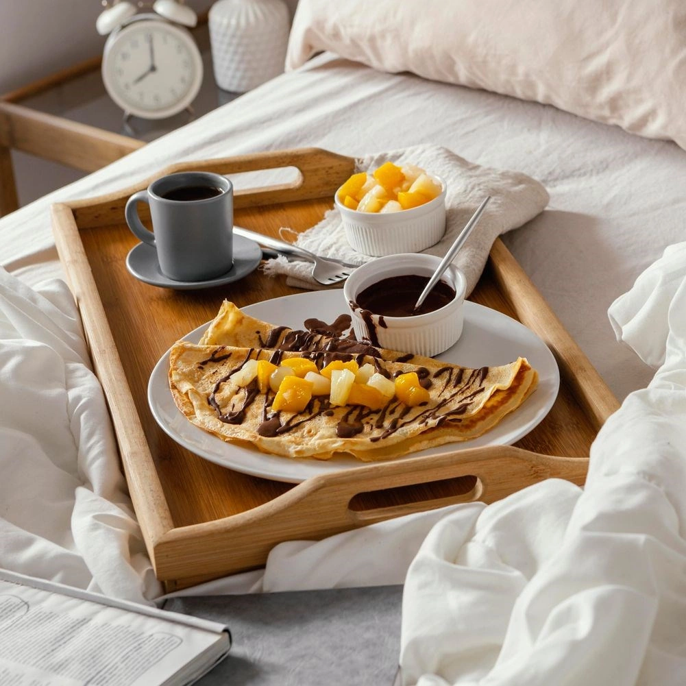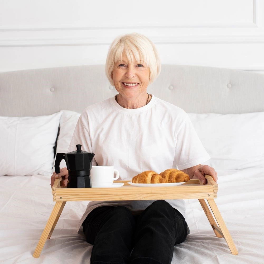 Składany stolik śniadaniowy z wysokiej jakości bambusa ułatwi codzienne czynności w domu. Wykorzystasz go do serwowania śniadania do łóżka, relaksu przy filmie oraz jako stolik do pracy z laptopem lub tabletem. Dzięki kompaktowym wymiarom i składanej konstrukcji łatwo się przechowuje i jest gotowy do użycia w kilka chwil.