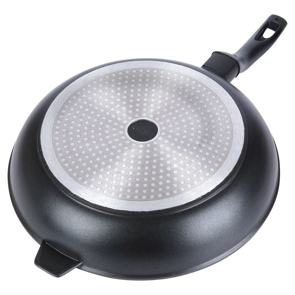 Warstwa Pfluon Granit bez PFOA/PTFE zapobiega przywieraniu i umożliwia gotowanie z minimalną ilością tłuszczu. Jedzenie łatwo się odrywa, a czyszczenie jest szybkie.