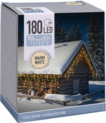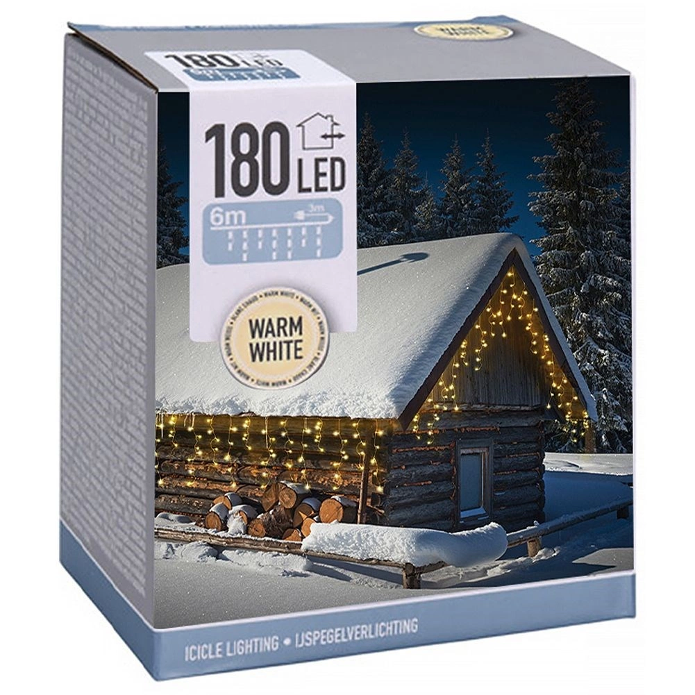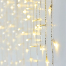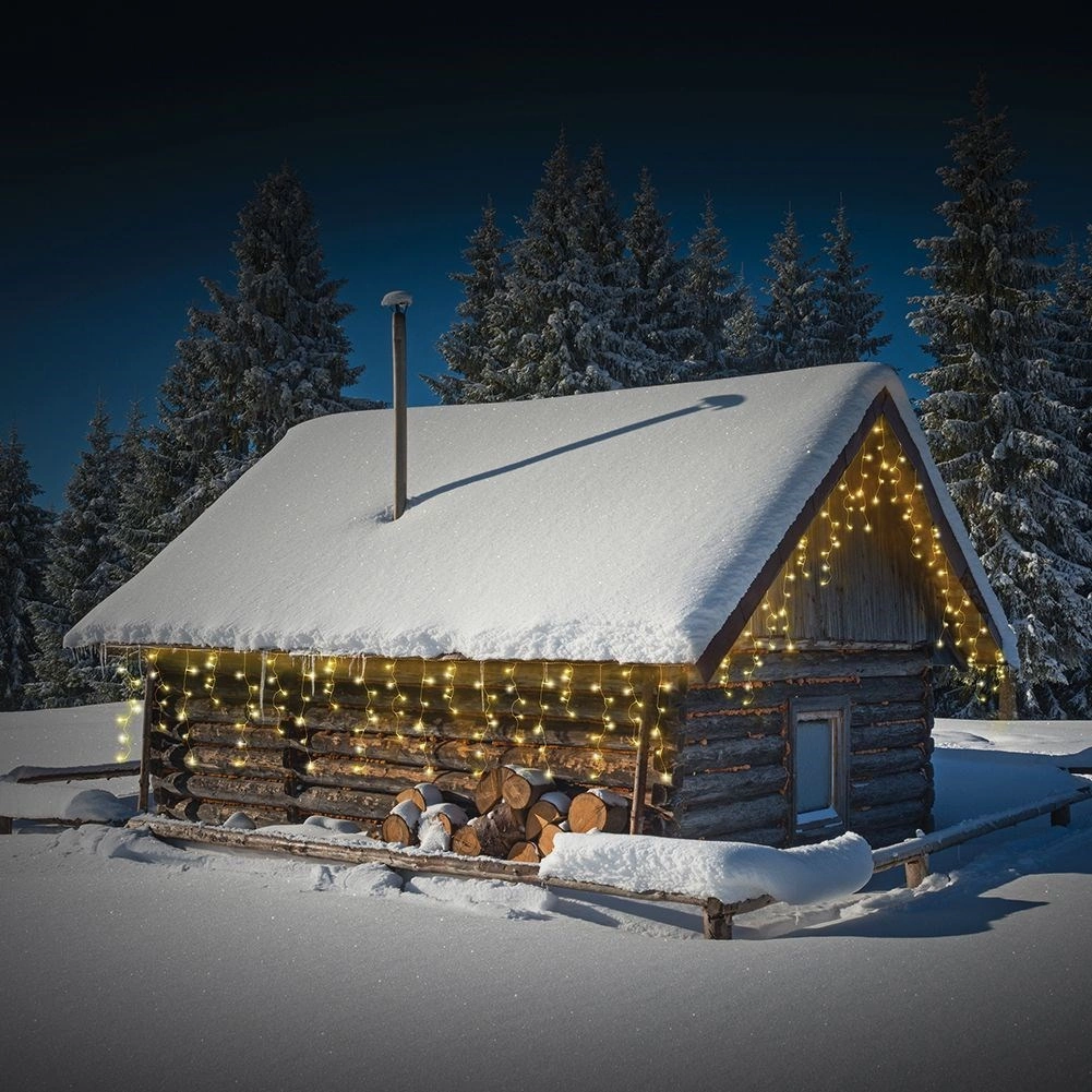 Elegancka świetlna zasłona o długości 6 m i wysokości ok. 52 cm z 180 diodami LED w odcieniu ciepłej bieli. Odpowiednia do użytku na zewnątrz i wewnątrz, z klasą szczelności IP44 oraz przezroczystymi przewodami dla dyskretnego wyglądu. Zasilanie sieciowe, ciągłe świecenie i łatwy montaż tworzą magiczną świąteczną atmosferę na elewacji, balkonie i przy kominku.