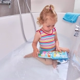 Lekka konstrukcja unosi się na wodzie i jest bezpieczna do zabawy w wannie oraz w basenie. Dzieci łatwo przewracają strony i odkrywają kolory oraz kształty.