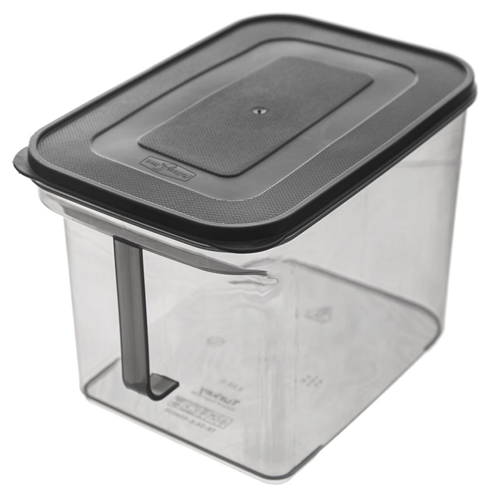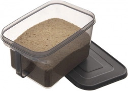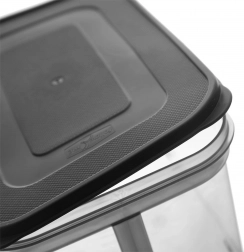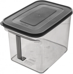 Praktyczny pojemnik na sypkie produkty z pokrywką i bocznym uchwytem do łatwego przenoszenia. Idealny na mąkę, cukier, sól, kaszę czy płatki. Ma pojemność 3,25 l i wymiary 23 × 15,5 × 15,5 cm. Wykonany z wytrzymałego, przezroczystego ciemnoszarego plastiku, który umożliwia szybką kontrolę zawartości. Przechowywanie bez wilgoci, szczelna pokrywka, odpowiedni do zmywarki, do kuchenki mikrofalowej bez pokrywki oraz do zamrażarki.