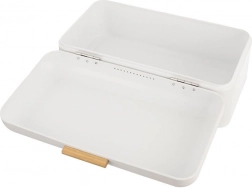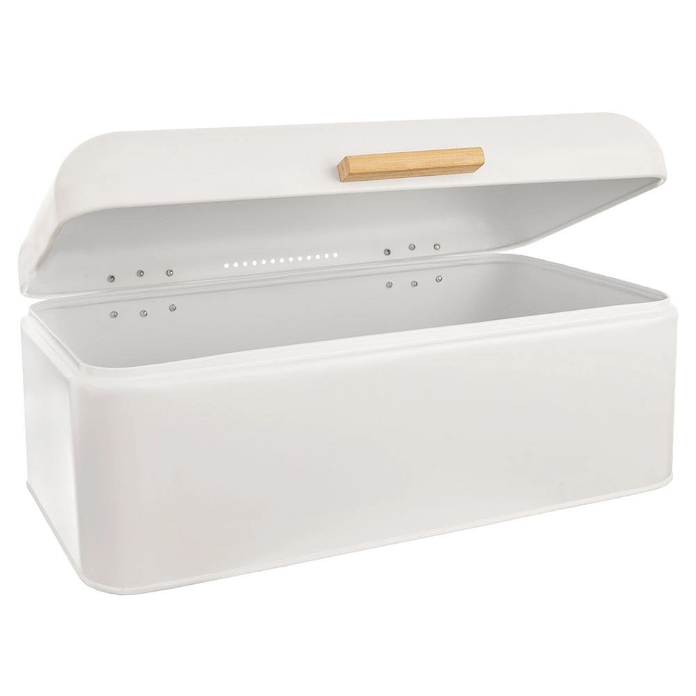 Metalowy chlebak WHITELINE w białym kolorze to stylowy i funkcjonalny dodatek do każdej kuchni. Dzięki solidnemu wykonaniu z metalu i wysokiej jakości wykończeniu Twoje pieczywo pozostanie dłużej miękkie i chrupiące. Wieko na zawiasach otwiera się od góry za pomocą wygodnego bambusowego uchwytu, co ułatwia codzienne użytkowanie.