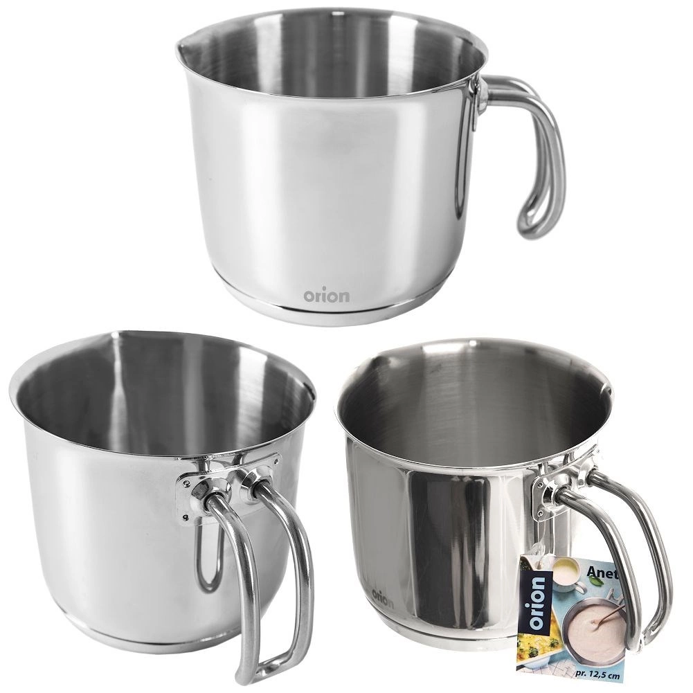 Rondelek ANETT ze stali nierdzewnej idealnie sprawdzi się do podgrzewania mleka, przygotowywania sosów, budyniów lub rozpuszczania czekolady. Wykonany z wysokiej jakości stali nierdzewnej 304, dzięki czemu jest odporny i trwały. Praktyczny dziobek w kształcie dzióbka ułatwia precyzyjne nalewanie bez kapania, a ergonomiczna rączka gwarantuje bezpieczną obsługę.