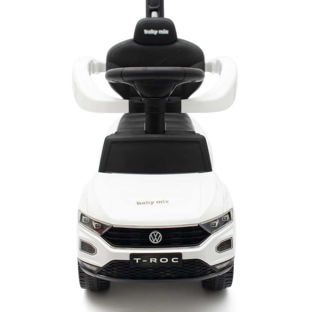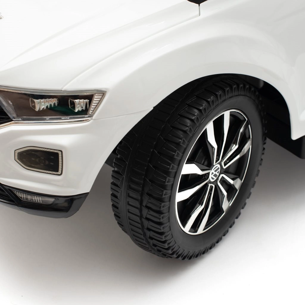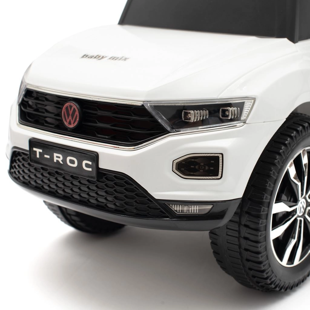 Licencjonowany jeździk VOLKSWAGEN T-ROC w białym kolorze zachwyca realistycznym wyglądem, wysoką jakością wykonania i dbałością o detale. Pomaga rozwijać motorykę i równowagę dziecka, jednocześnie zapewnia komfortową i bezpieczną jazdę dzięki szerokiemu siedzeniu z oparciem, elementom ochronnym przed wywróceniem i solidnym plastikowym kołom z metalowymi osiami.