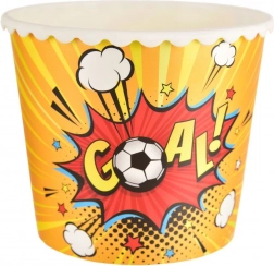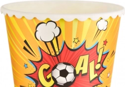 Ten przestronny kubek na popcorn oraz słone i słodkie przekąski zapewni wygodne serwowanie podczas wieczorów filmowych, transmisji sportowych czy urodzinowych przyjęć. Dzięki pojemności 2,3 l pomieści dużą porcję popcornu lub chipsów, a kolorowy komiksowy design z motywem piłki nożnej i napisem GOAL wprowadzi zabawną atmosferę na każdą okazję.