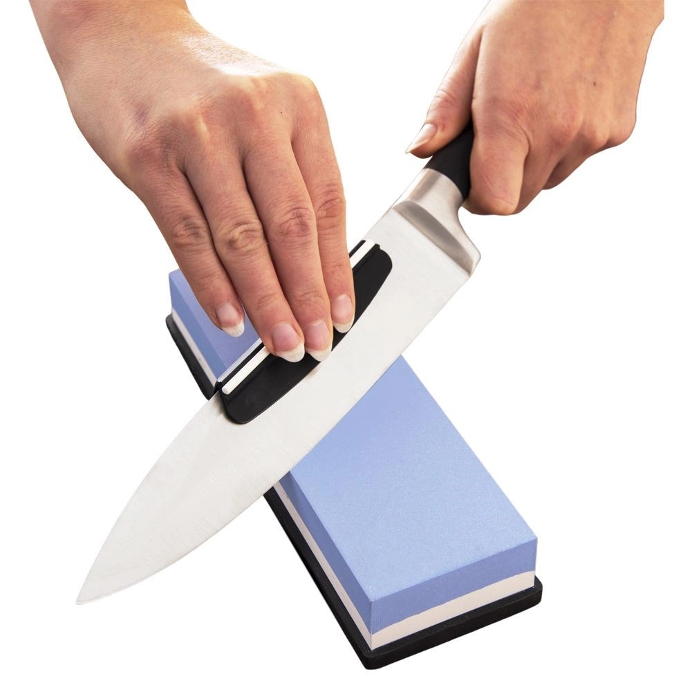 Zestaw nadaje się do noży kuchennych, nożyczek, dłut oraz wybranych narzędzi ogrodowych. Przed użyciem wystarczy namoczyć kamień przez ok. 10 minut i podczas ostrzenia regularnie go zwilżać. Materiał z korundu jest odporny na zużycie i korozję, dzięki czemu zapewnia długą żywotność i stabilną wydajność. Nie nadaje się do noży ząbkowanych i ceramicznych.