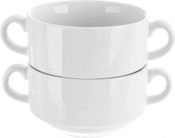 Elegancka miska bulionowa MONA o pojemności 290 ml idealnie nadaje się do serwowania zup, bulionów i kremów. Wykonana z wysokiej jakości porcelany w białym kolorze, z dwoma uchwytami dla bezpiecznego trzymania. Dzięki uniwersalnemu zastosowaniu sprawdzi się także do płatków, jogurtu, owoców czy przekąsek. Jest odpowiednia do zmywarki i kuchenki mikrofalowej i pięknie uzupełni Twoją zastawę stołową.